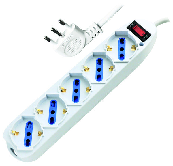 Multipresa con 5 prese Schuko/Bipasso SPINA 10A con INTERRUTTORE e PROTEZIONE